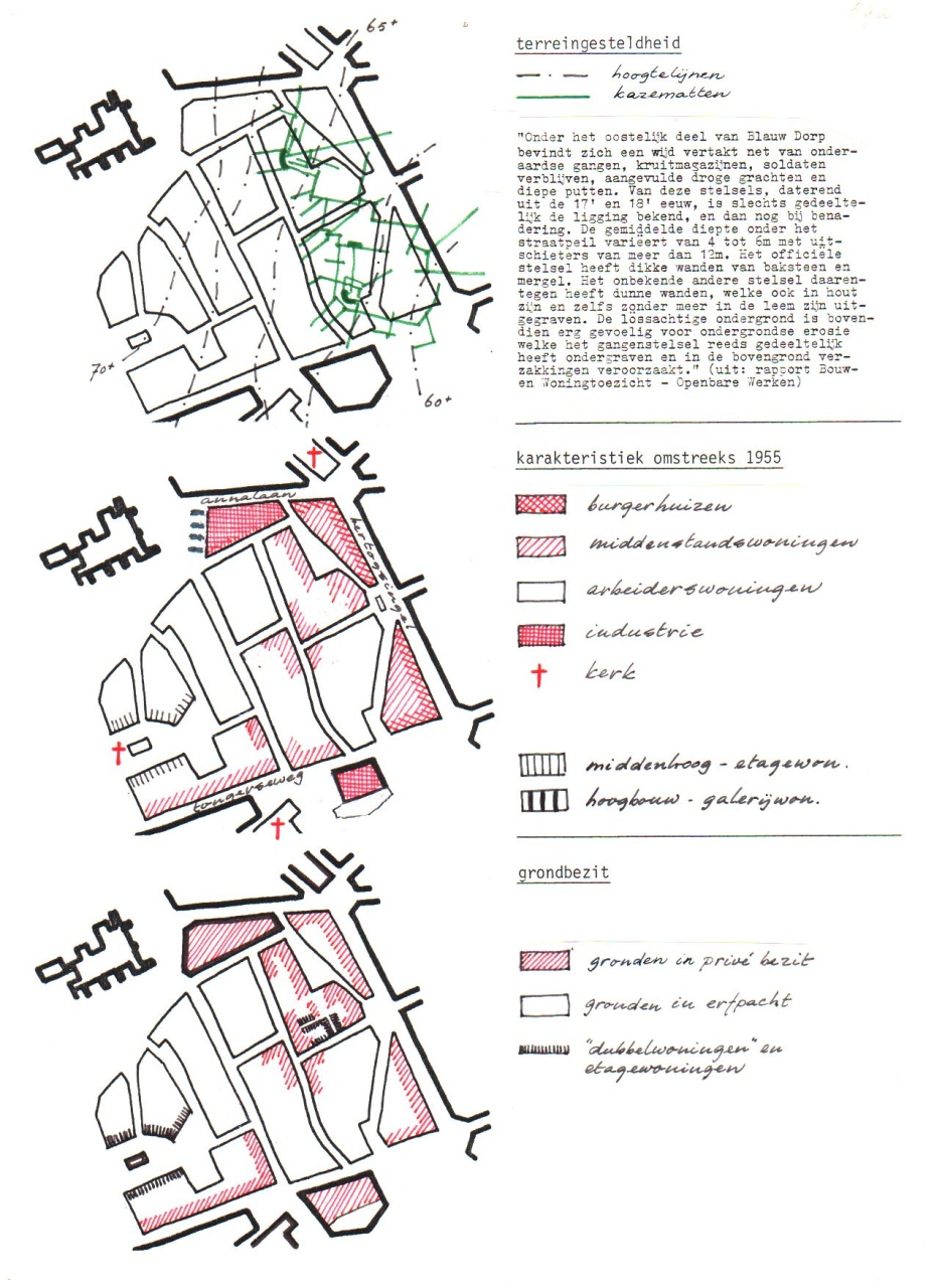 De tekst blijft noodgedwongen vanwege tijdsgebrek voorlopig kort. Verklappen wil ik alvast dat ik in het Blauwe Dorp een gedeelte van mijn jeugd heb doorgebracht, terwijl ik later als ambtenaar plannen kon ontwikkelen voor de renovatie van deze buurt, die gedoemd was om volledig gesloopt te worden. Het was de tijd van de zogeheten stadsvernieuwing. “Ondergronds” voorzag ik de inderhaast geformeerde buurtgroep van adviezen. Mijn ervaringen zijn verwerkt in m’n afstudeerproject aan de Academie van Bouwkunst te Amsterdam. Veel van dat materiaal zal ik wellicht later toevoegen. Ook anekdotes uit die tijd zijn in dit verband beslist de moeite waard. De socioloog van de Dienst Stadsontwikkeling: “Er zijn al te veel generaties opgegroeid met het Blauwe Dorp.”